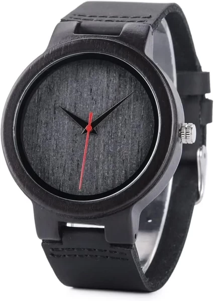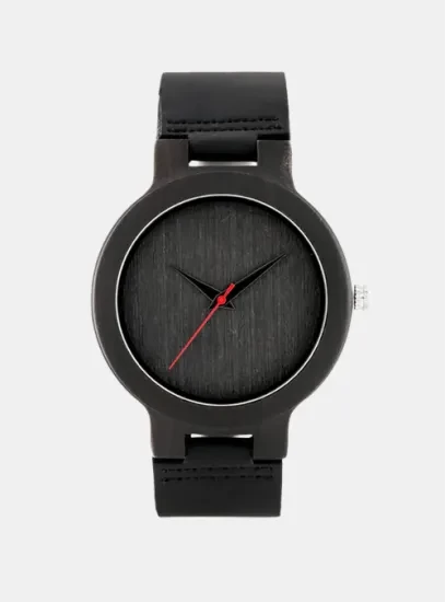 Le contraste entre le cadran noir brossé, les aiguilles rouges dynamiques et le bracelet en cuir véritable crée une allure sobre et distinctive.