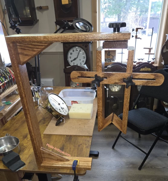 Il peut être installé aussi bien sur une table de travail que fixé au mur, selon les besoins de l’horloger.