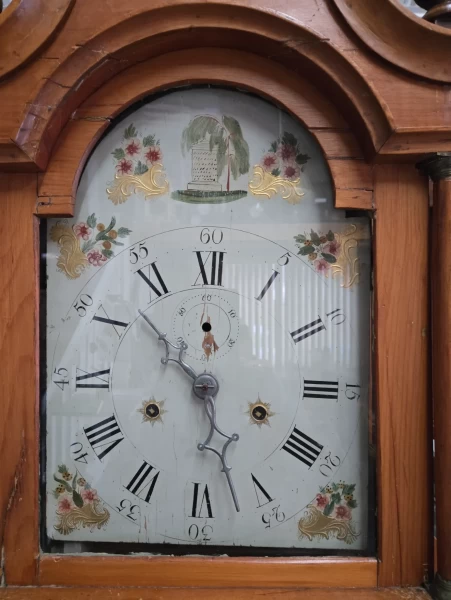 Découvrez une pièce véritablement unique : une horloge de grand-père datant de la fin du XVIIIᵉ siècle, dotée d’un rare mouvement entièrement en bois, typique des modèles produits en Amérique du Nord et dans le Nord-Est des États-Unis autour de 1790.