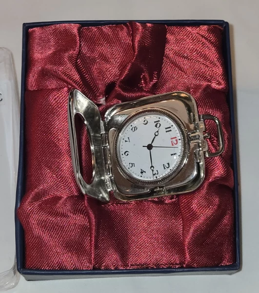 de forme carrée se tenant debout pour servir, au cours d'un voyage, d'horloge miniature. Côté style :